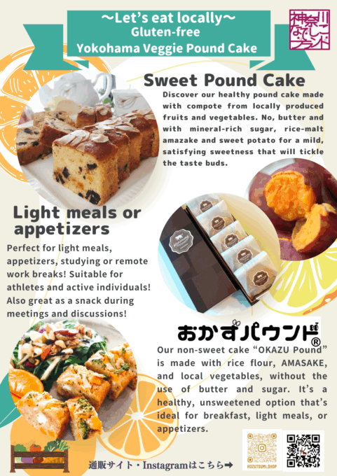 Our pound cake made with rice flour, rice Koji sweet and local vegetable has been certified as ‘Kanagawa Nadeshiko Brand’.