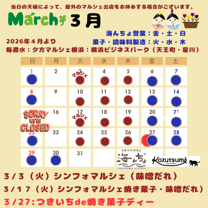 初回の3月3日のマルシェ開催日に、