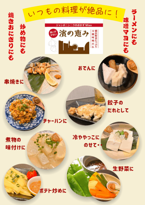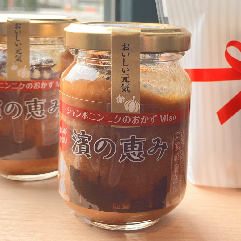 『濱の恵みージャンボにんにくおかず味噌だれ』は横浜市が横浜の農業・農畜産物のPRや地産地消に寄与する事業に対して認定する「地産地消ビジネス創出支援事業 育成プログラム」に選考され商品化された商品です。横浜の農作物の魅力を発信しつつ、全国の皆様に美味しい、安全、身体にいい!をお届けします。