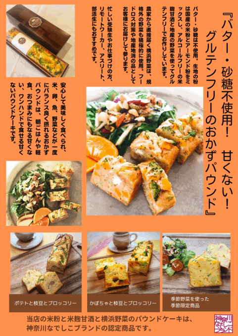 その3.グルテンフリー・「米粉と米麹甘酒と横浜野菜にパウンドケーキ」